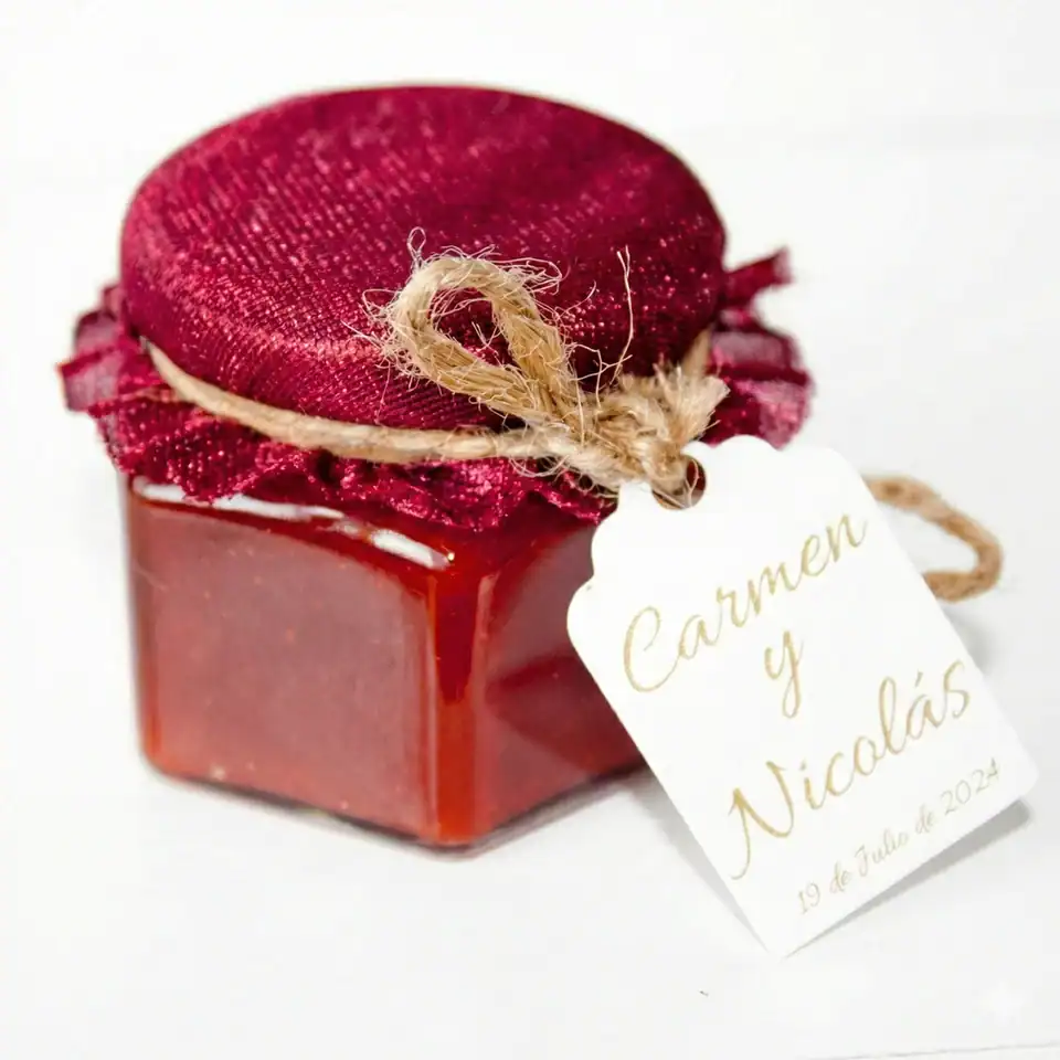Exquisitas mermeladas artesanales en formato mini elaboradas con fruta natural seleccionada y recetas tradicionales, presentadas en delicados botes de 30gr que combinan sabor gourmet y elegancia para crear un detalle dulce y memorable.